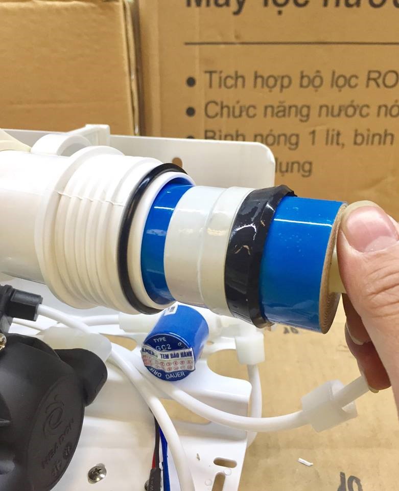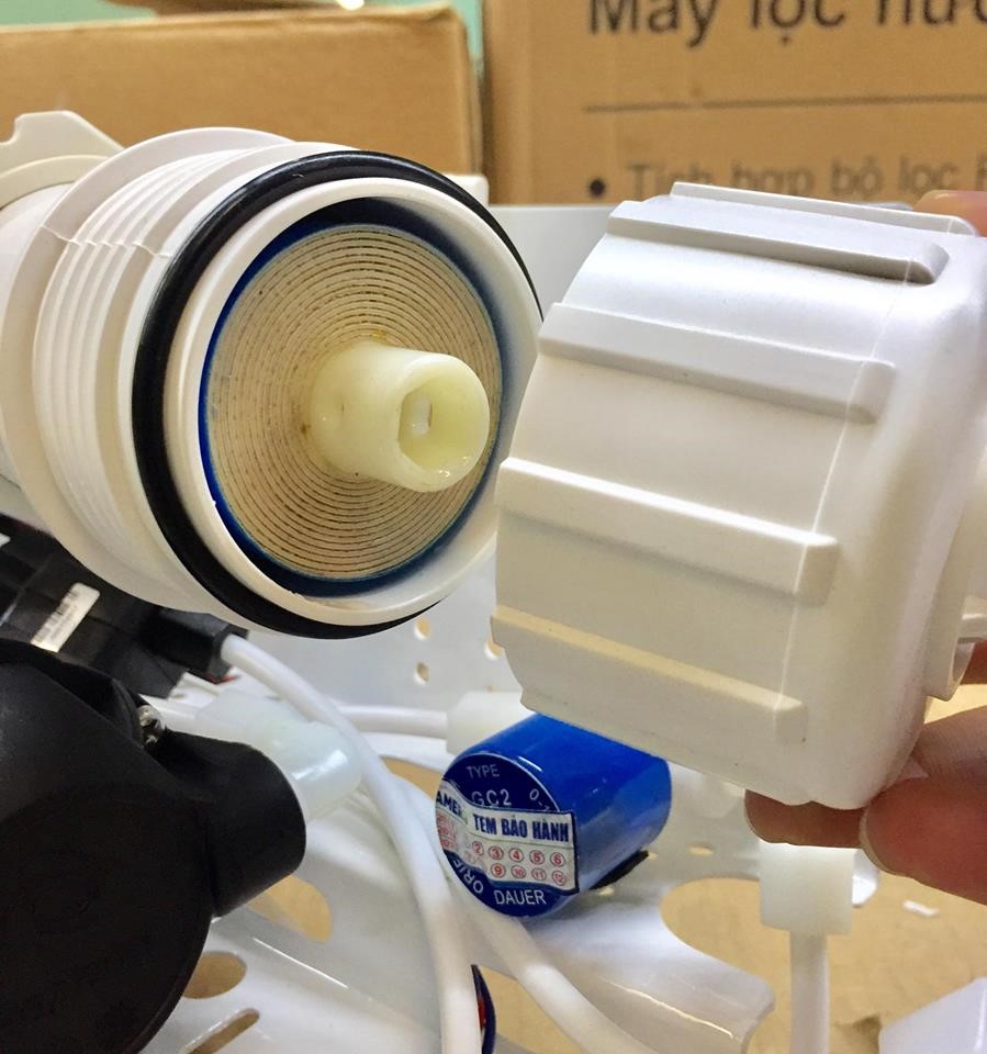 5. Sau khi lắp màng RO mới xong, bạn vặn chặt lại nắp và dây dẫn vào đầu vỏ màng lọc. Bạn cho nước chảy qua máy, Kiểm tra rò rỉ và xem máy đã hoạt động ổn định hay chưa.