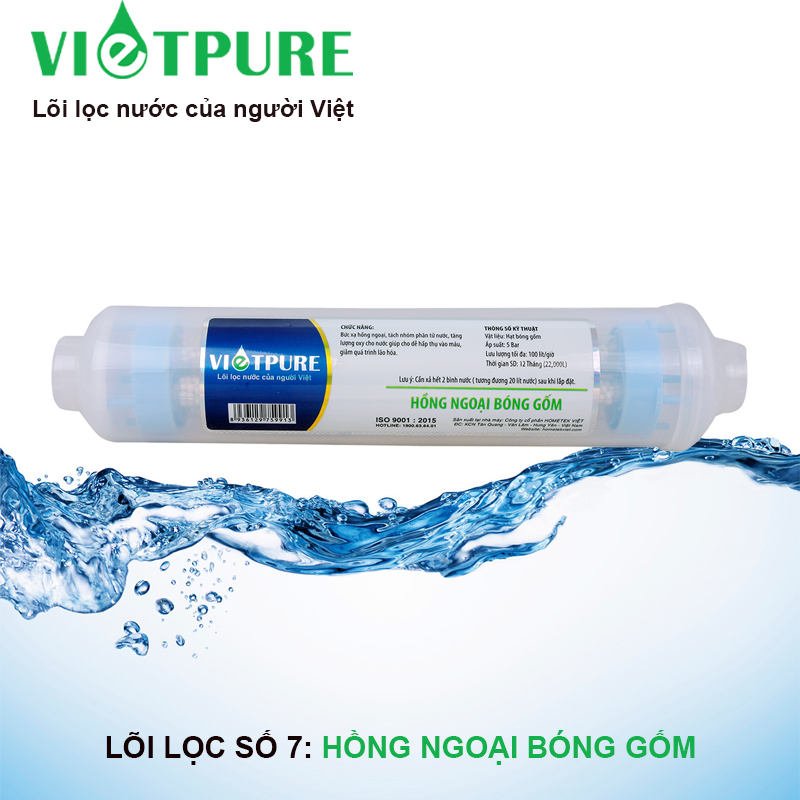 Lõi lọc nước Vietpure được sản xuất và phân phối bởi Công ty Cổ phần Hometek Việt. Sản phẩm được sản xuất trên dây chuyền công nghệ hiện tại, đạt tiêu chuẩn ISO 9001:2015. Chủng loại lõi đa dạng, đáp ứng tối đa nhu cầu sử dụng của khách hàng. Sản phẩm có thể sử dụng để thay thế cho hầu hết các loại máy lọc nước gia đình.