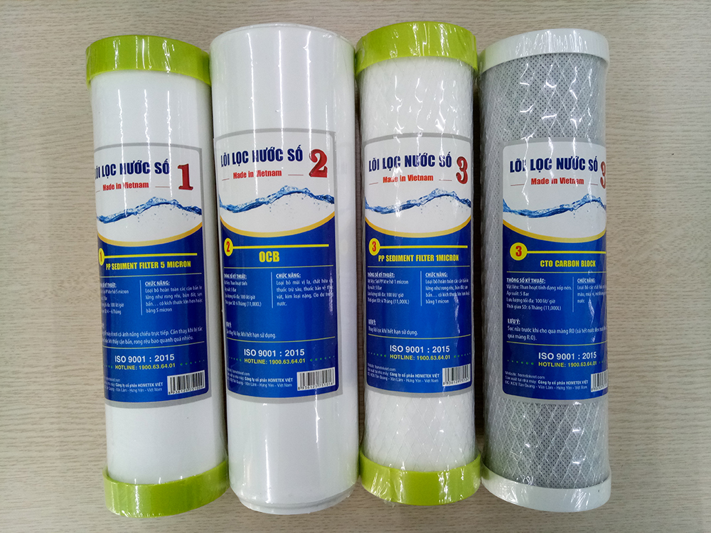 Công ty Cổ phần Hometek Việt chuyên gia công sản xuất và cung ứng lõi lọc nước như: lõi PP 1 micron, lõi PP 5 micron, lõi than xốp nén CTO, lõi loại bỏ canxi Cation, lõi than hoạt tính dạng hạt OCB/GAC/UDF, các loại lõi chức năng T33, Khoáng đá, Hồng Ngoại, Nano Bạc, Alkaline, Hydrogen... Với hệ thống trang thiết bị hiện đại, dây chuyền sản xuất đạt tiêu chuẩn ISO 9001:2015, sản phẩm lõi lọc nước của Công ty Cổ phần Hometek Việt hiện đang là sự lựa chọn hàng đầu của các thương hiệu máy lọc nước và khách hàng tiêu dùng trực tiếp trên thị trường hiện nay.