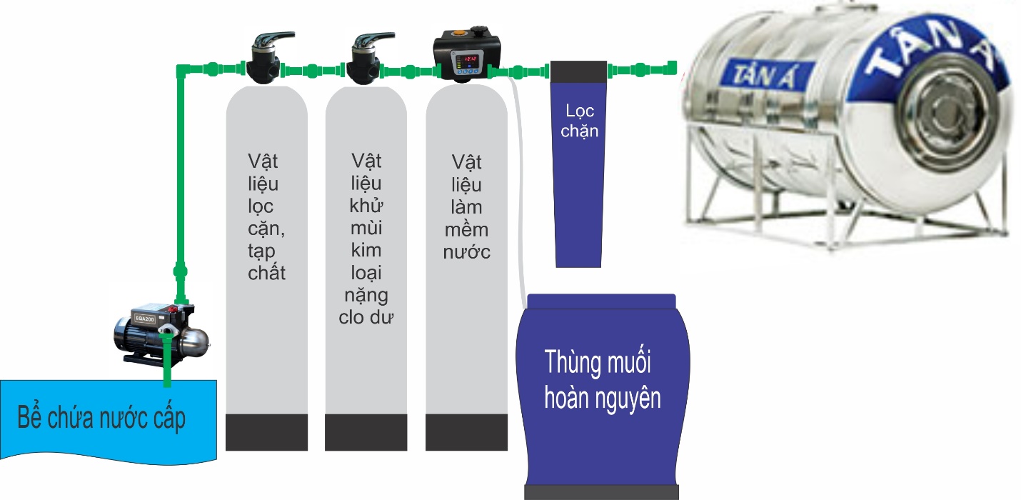 Sơ đồ hệ thống lọc tổng - lọc nước sinh hoạt đầu nguồn